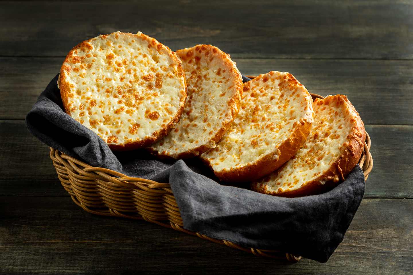 Ломтики белого хлеба с чесночным маслом и сыром «Моцарелла»