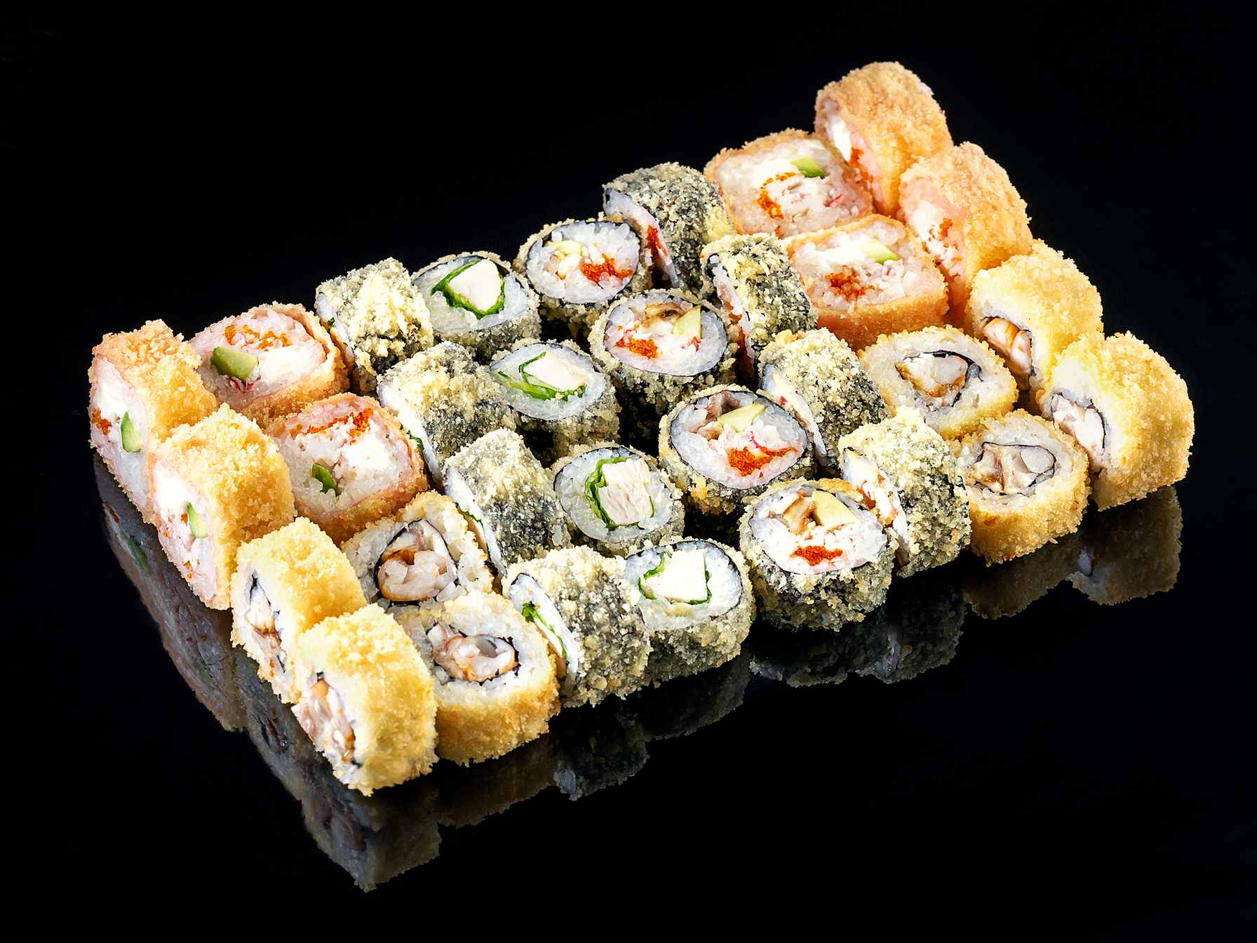 Изуми тай, сяке, спайс сяке, тобико, унаги, сяке маки, филадельфия, калифорния, яки маки.